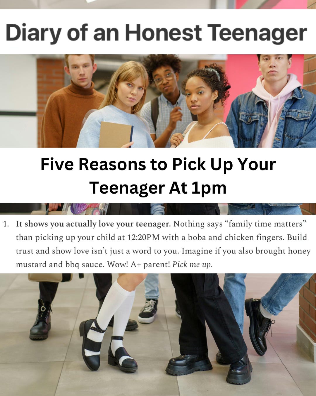 Picking up your teenager shortly after lunch has many emotional, psychological, mental, spiritual, and even academic benefits.